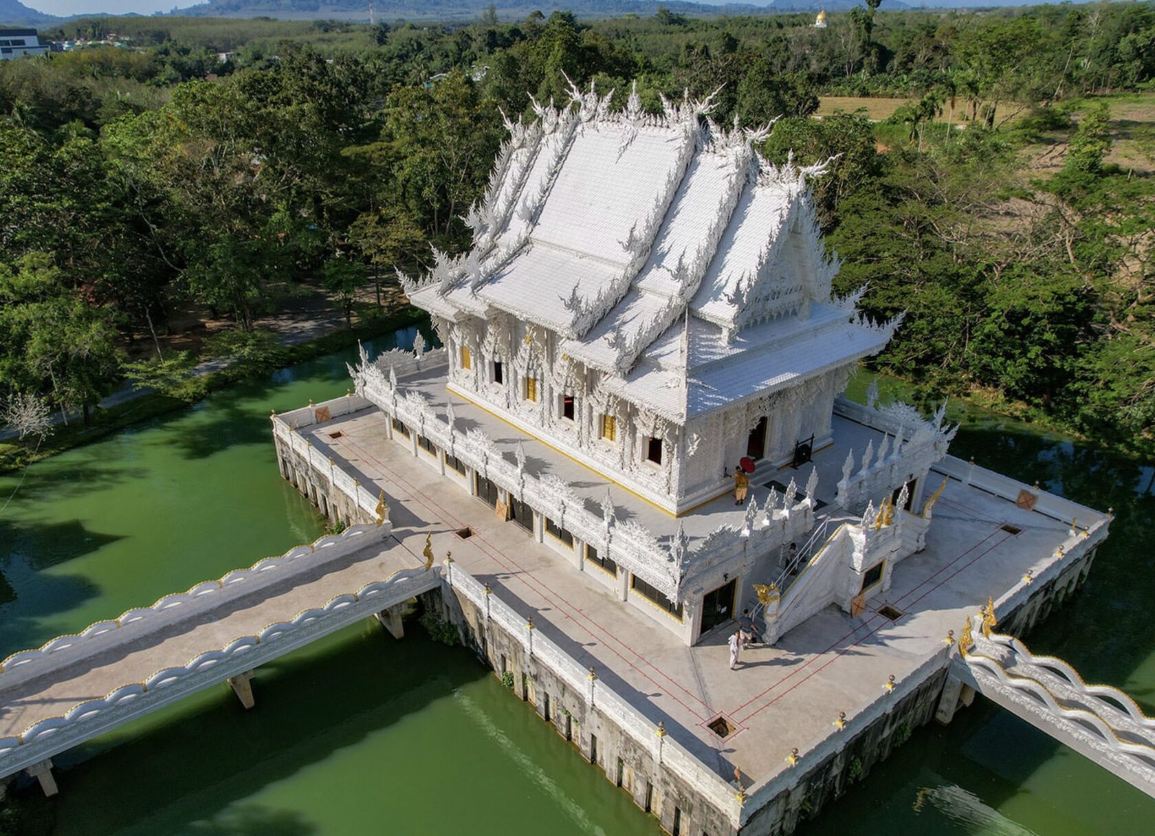- Один из самых красивых храмов Пхукета с белоснежной архитектурой и изящными деталями.